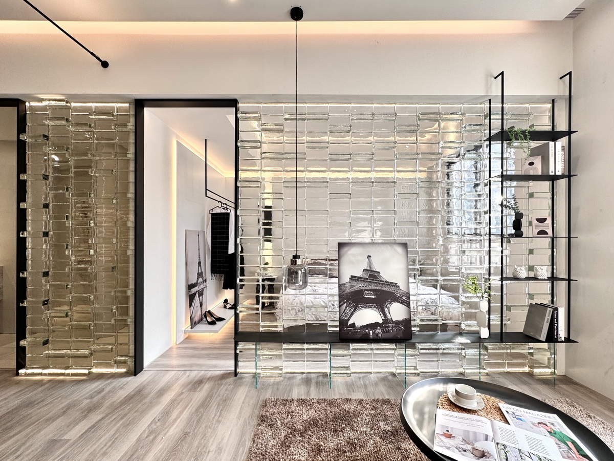 施工建材:水波紋實心玻璃磚 | 施工工法:平立交砌式 | 顏色:透明 照片提供|雅筑室內設計有限公司