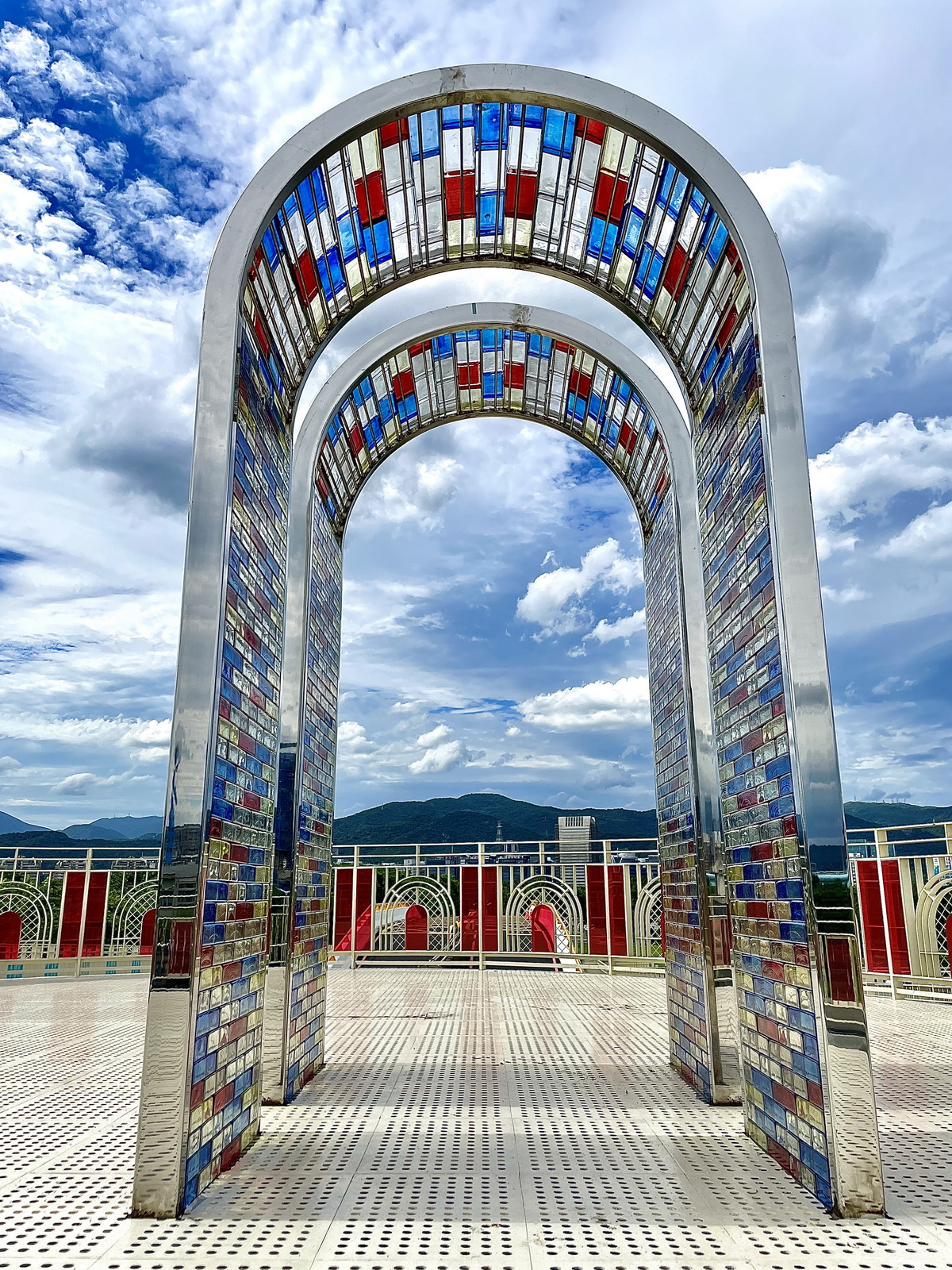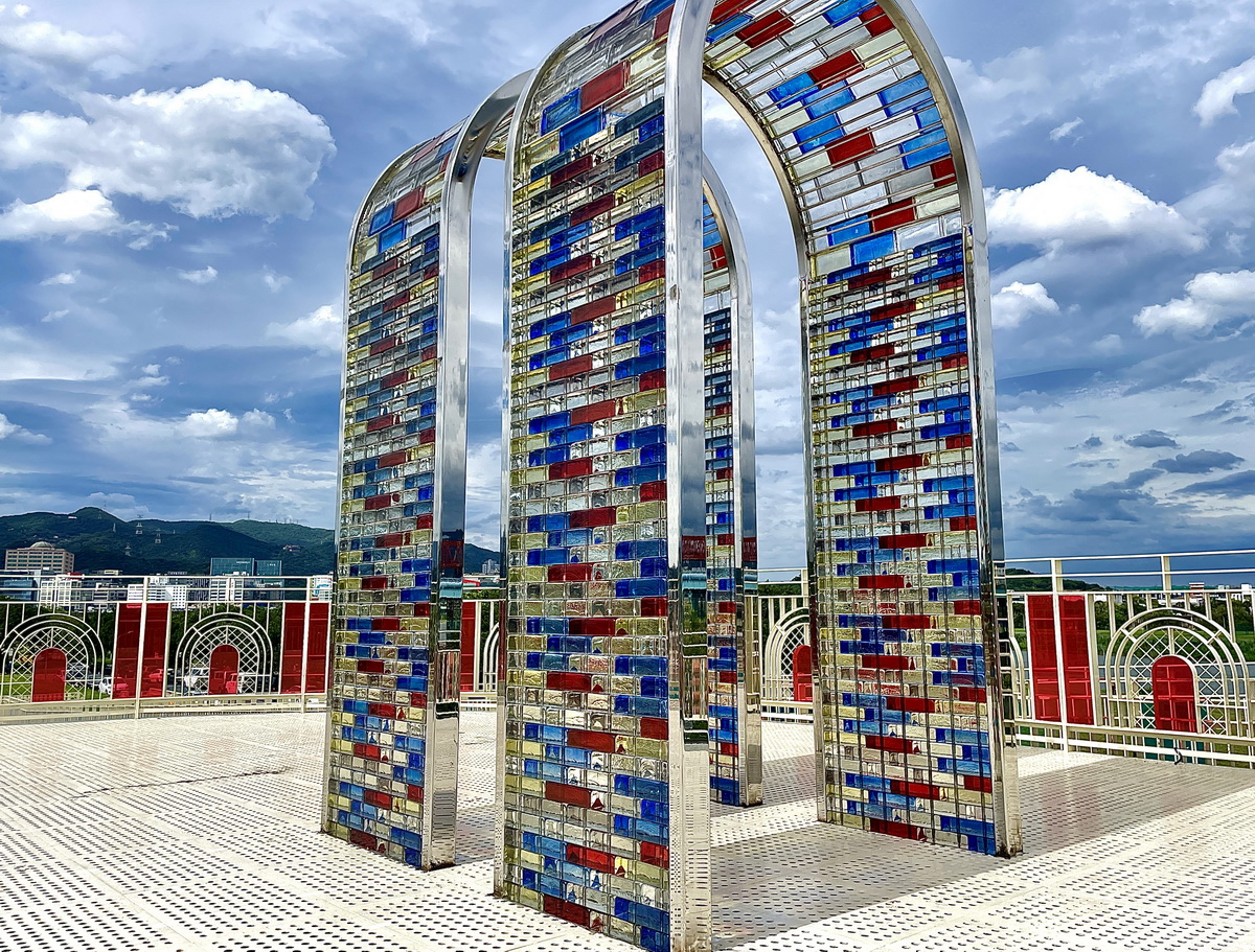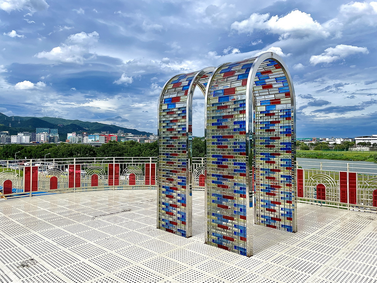 台北市河濱公園造景藝術|彩色實心玻璃磚
