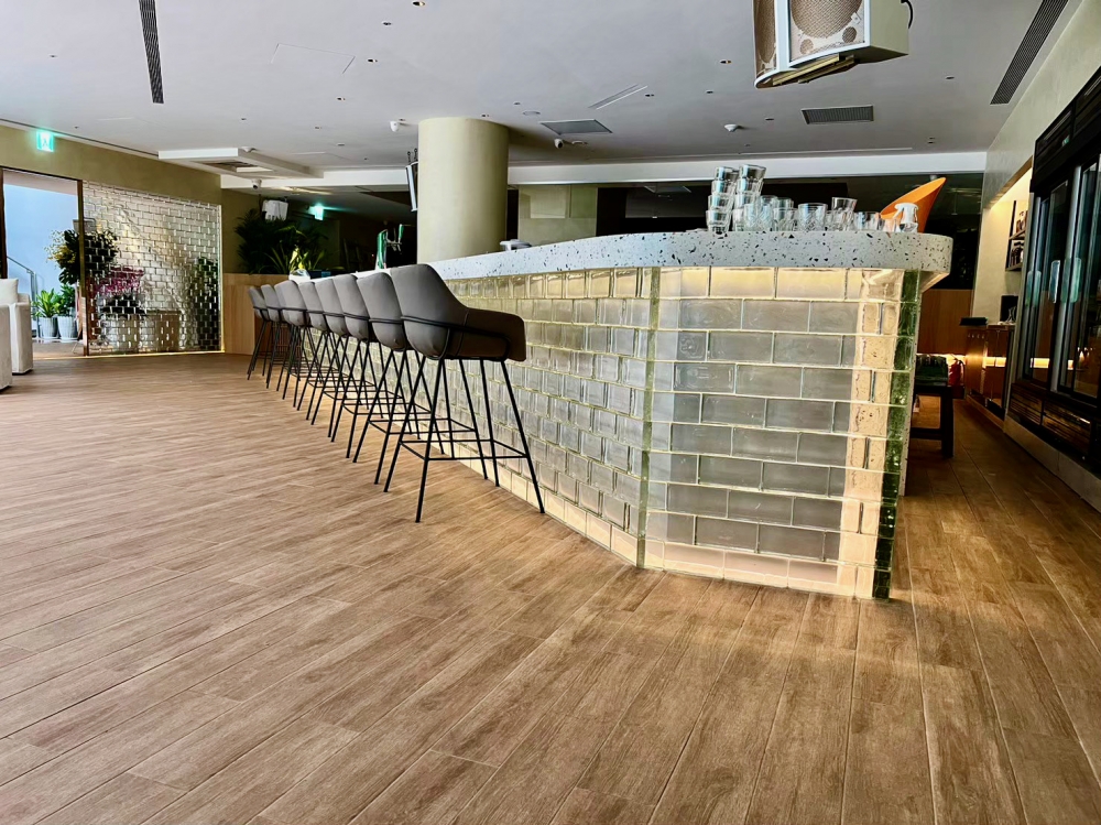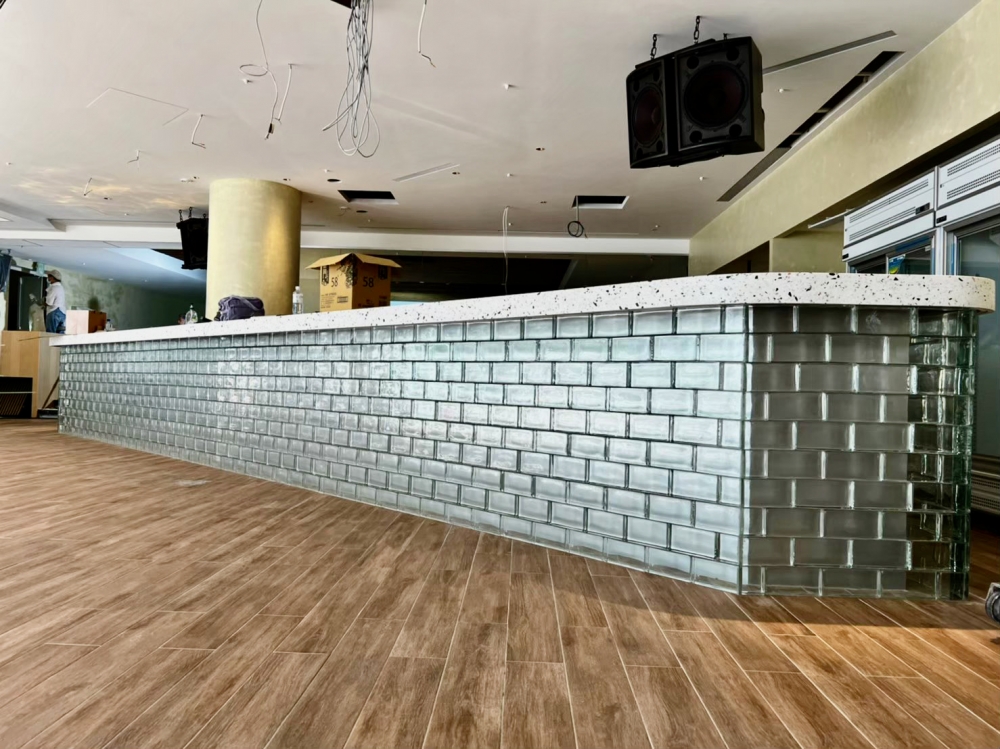施工建材:水波紋實心玻璃磚 | 施工工法:立砌式 | 顏色:透明